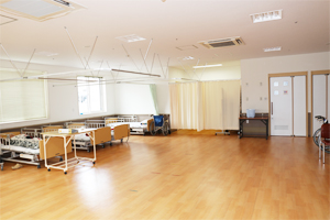 充実したレクリエーションはここで行います。また、入所施設が併設されており、慰問等のイベントに一緒に参加できるので楽しく過ごせます。