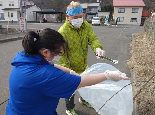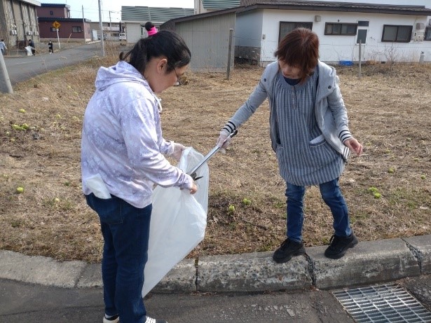令和6年4月11日に事業所周辺のゴミ拾いを行いました。二人一組になって町内周辺を一時間ほど歩き、吸い殻や空き缶などを集め近隣町内の美化に努めました。今後も継続して実施していこうと思います。